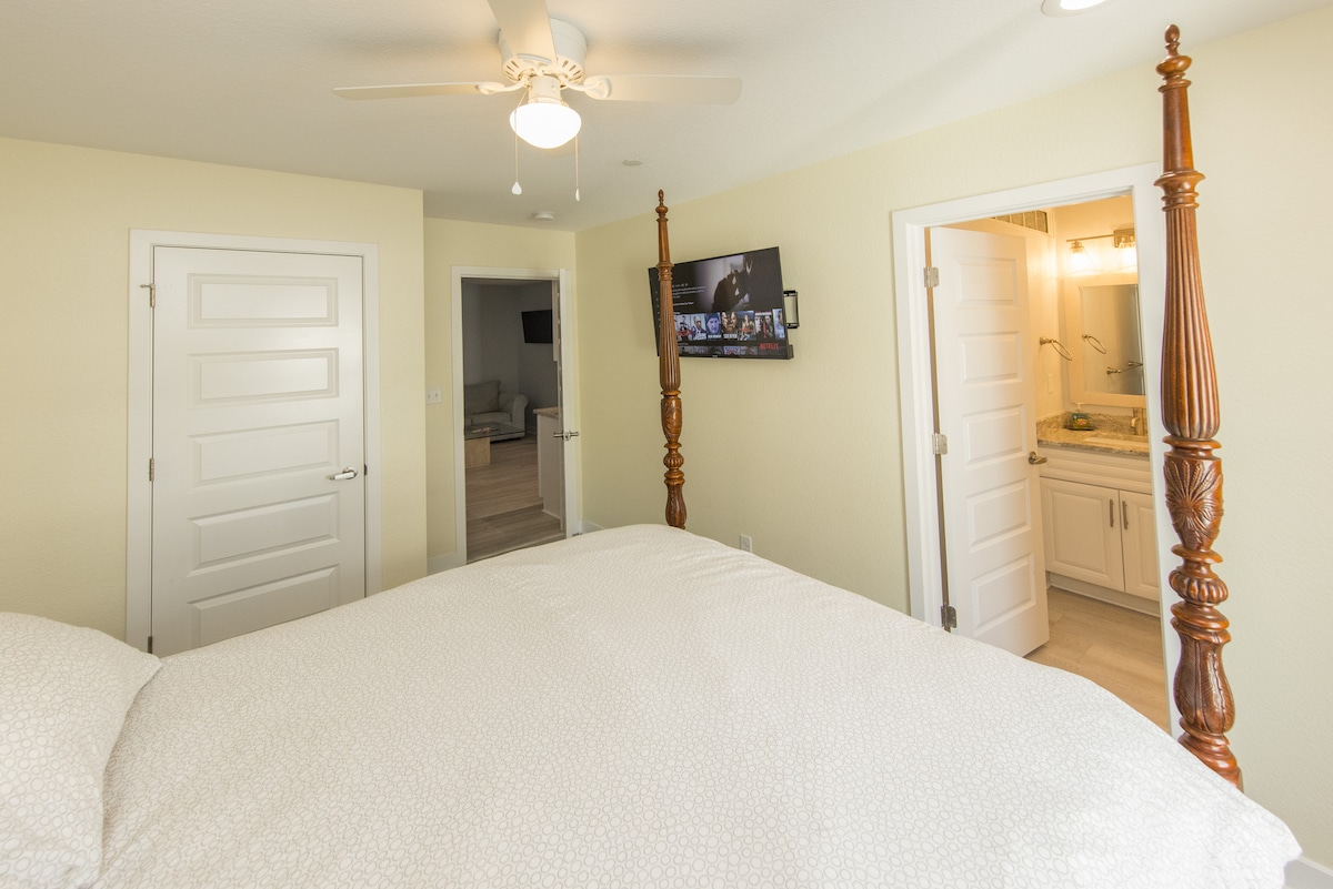 This unit 304B two-bedroom unit has the following set up. As you enter 304 door on main floor and hall, you have a locked door straight ahead 304 B two bedroom and three bedroom is the locked door to your left. Two queen bedrooms with their private baths one is just a shower the other tub/shower. Living area includes, table and chairs, queen sofa bed, and sofa, One parking spot, additional up charge
